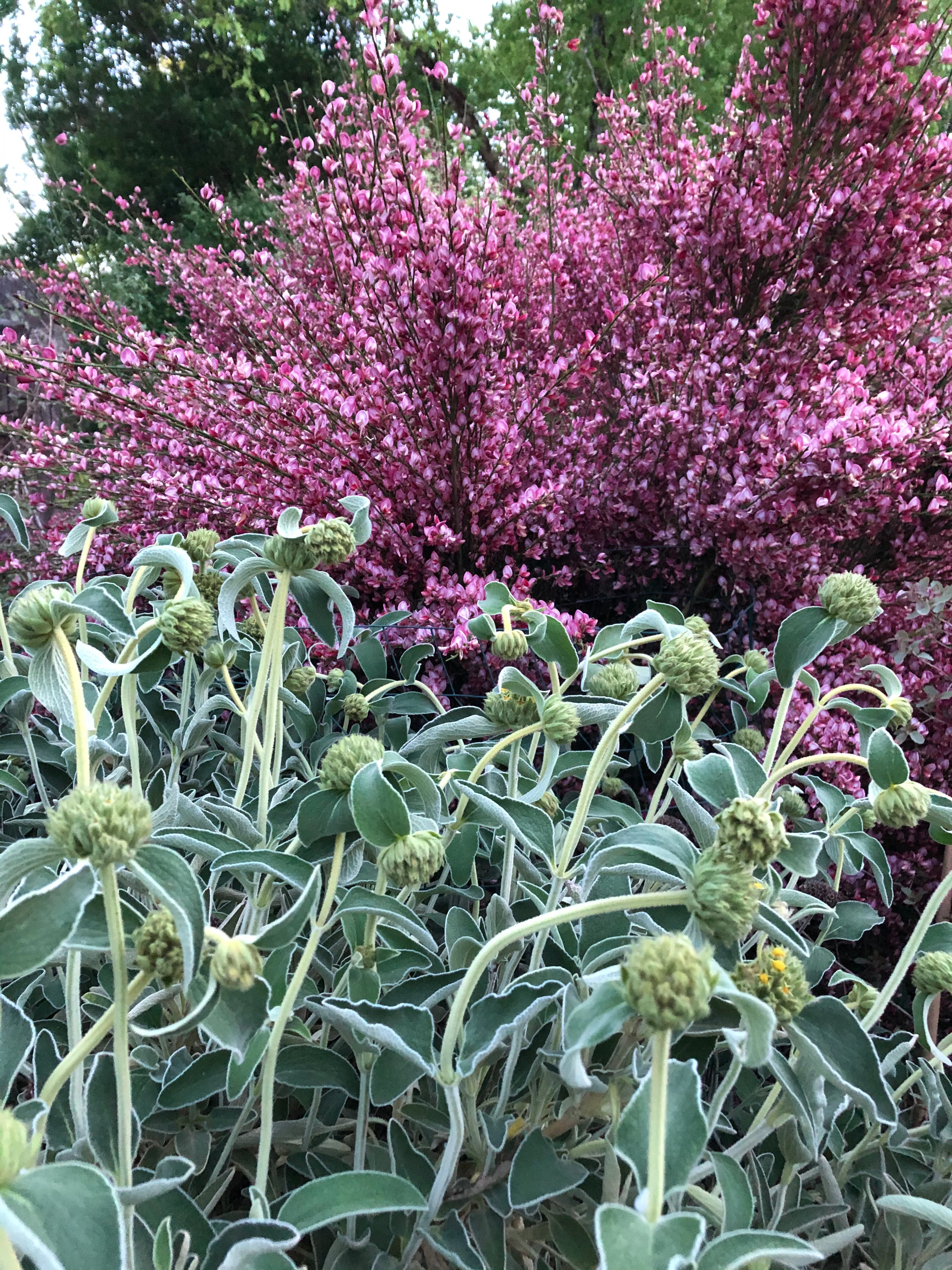 Wooly leaved shrub, from Turkey and very much like its close relative P. fruticosa. To 4 ft tall and wider with pale, blue-green, slight fuzzy leaves that take on a coppery fuzz over time and, in spring to early summer, spherical heads of two-lipped, yellow flowers appear on upright stems. Full sun to light shade and well-drained soil with little summer water for these natives of Mediterranean Europe. Evergreen and frost hardy to 15F, mid USDA zone 8.